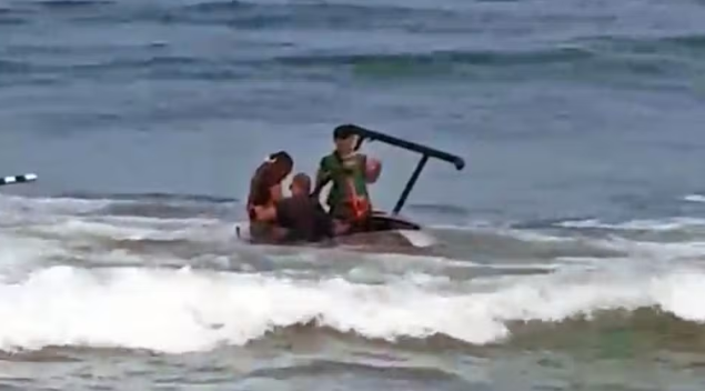 Um vídeo gravado por pessoas que estavam na faixa de areia mostra três ocupantes de um helicóptero saindo ilesos após um pouso forçado no mar da Praia da Barra da Tijuca, na manhã desta sexta-feira (3).